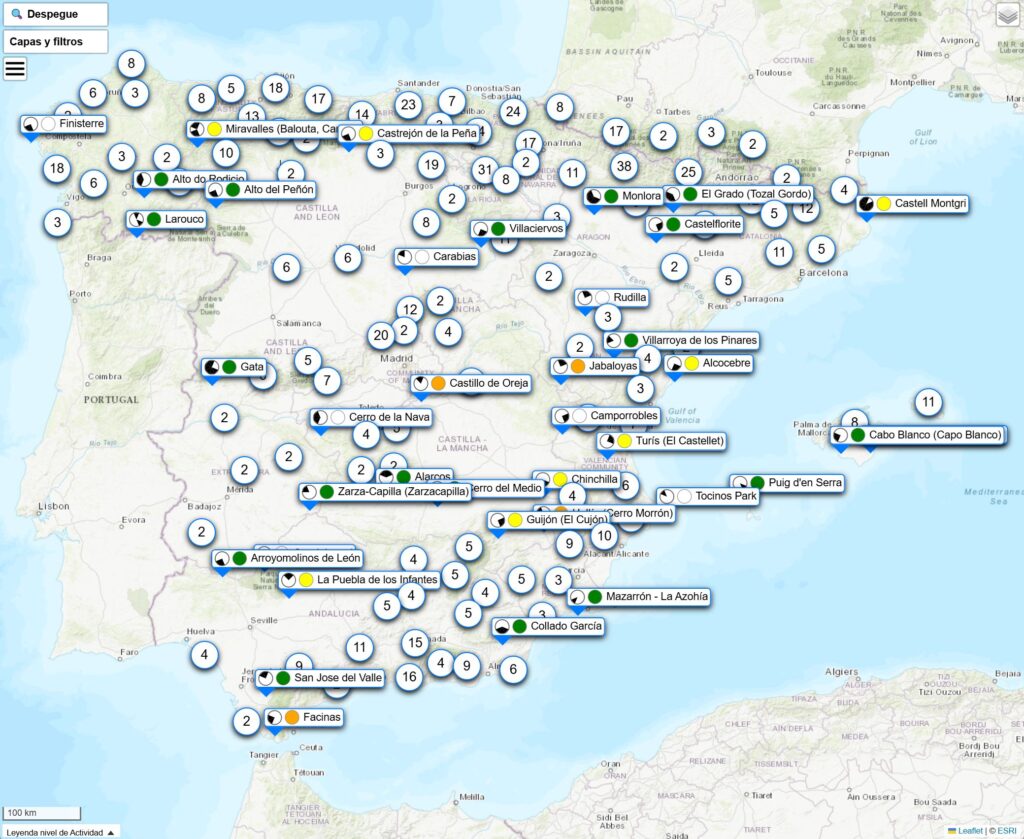 - Naranja = Actividad media (al menos 1 vuelo hace 6-12 meses)