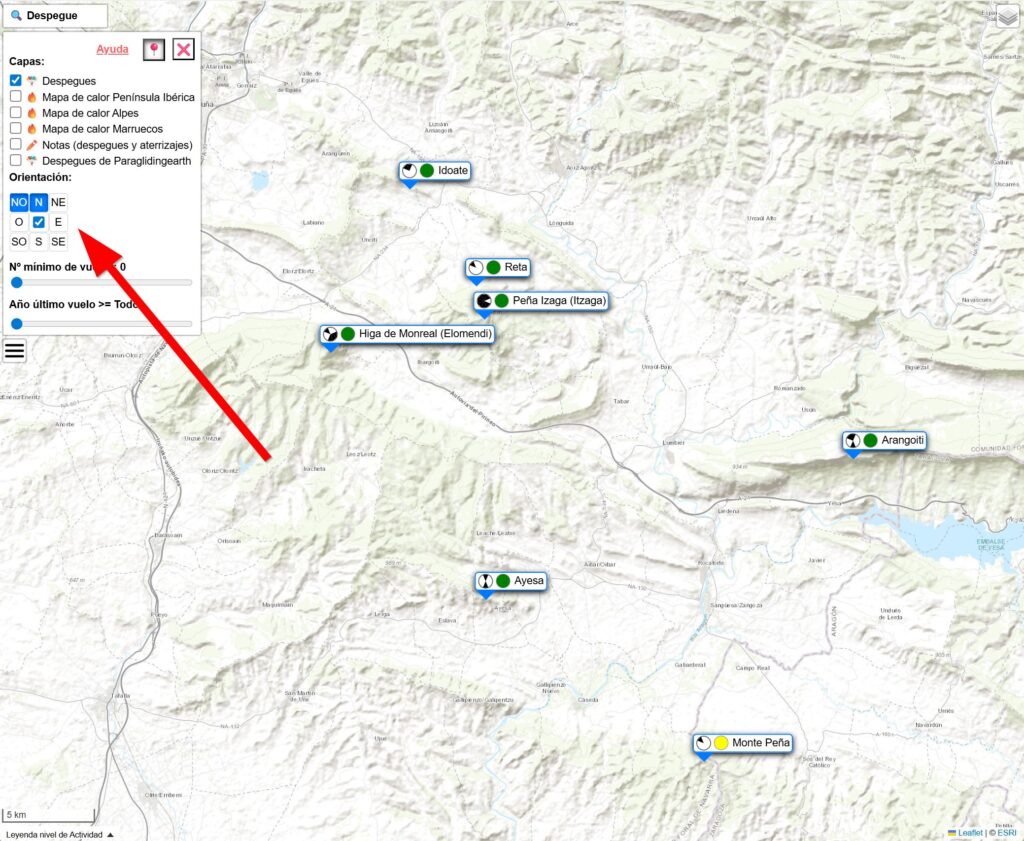 ✅ Puedes filtrar los despegues, para que se muestren solo los de la orientación u orientaciones que nos interesan, según el pronóstico de viento que haya: