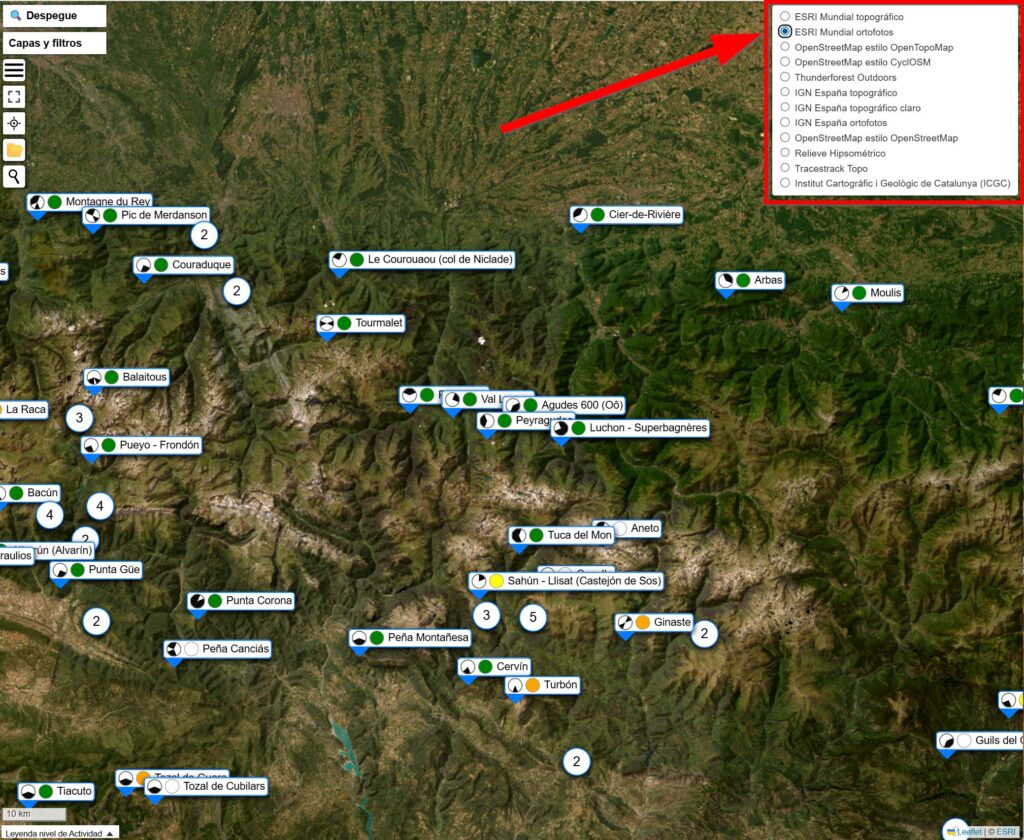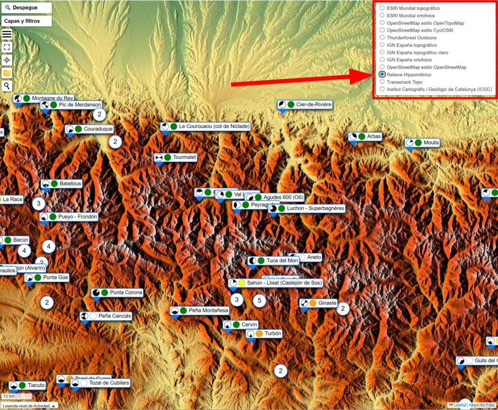 ✅ Arriba a la derecha tienes un control de capas de fondo con otros tipos de mapas topográficos e imágenes aéreas: